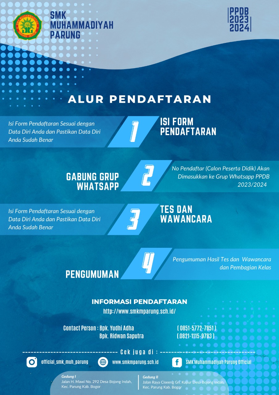 - Mengunduh Formulir yang tersedia pada website dan mencetak serta mengisi dengan lengkap formulirnya lalu di serahkan kebagian Tata Usaha sekolah (Membawa persyaaratan fisik lainnya)